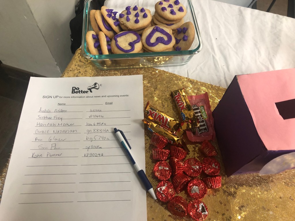 Last week, on February 12th and in celebration of Valentine’s Day, the Volunteer and Community-Based Events team held a tabling event in Letts and Anderson halls. The event encouraged students to expand the kinds of love that Valentine’s Day celebrates by pledging to Do Better for themselves, their loved ones, their friends, or their community. The event was a lot of fun to plan for, and it seemed to brighten people’s day. We wanted it to be reminiscent of sharing Valentines in elementary school, but instead of giving candy to classmates, you make a commitment to do better in a tiny way.